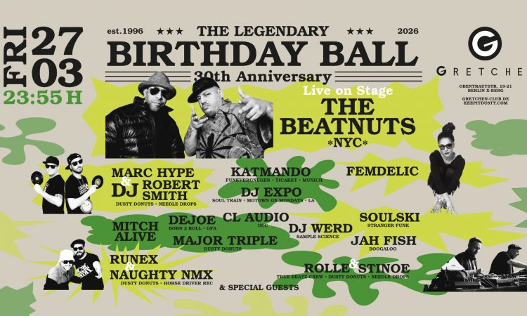 The Legendary Birthday Ball 202630th anniversary The Beatnuts (NYC)Marc Hype & DJ Robert Smith (Dusty Donuts / Needle Drops)Runex & Naughty NMX (Dusty Donuts / Horsedriver Rec)FemdelicDJ Expo (Soul Train / Motown on Mondays LA)Katmando (Funkvergnügen / Ticaret Munich)Dejoe (GFA)Mitch AliveRolle & Stinoe (Dusty Donuts / Needle Drops / True[…]