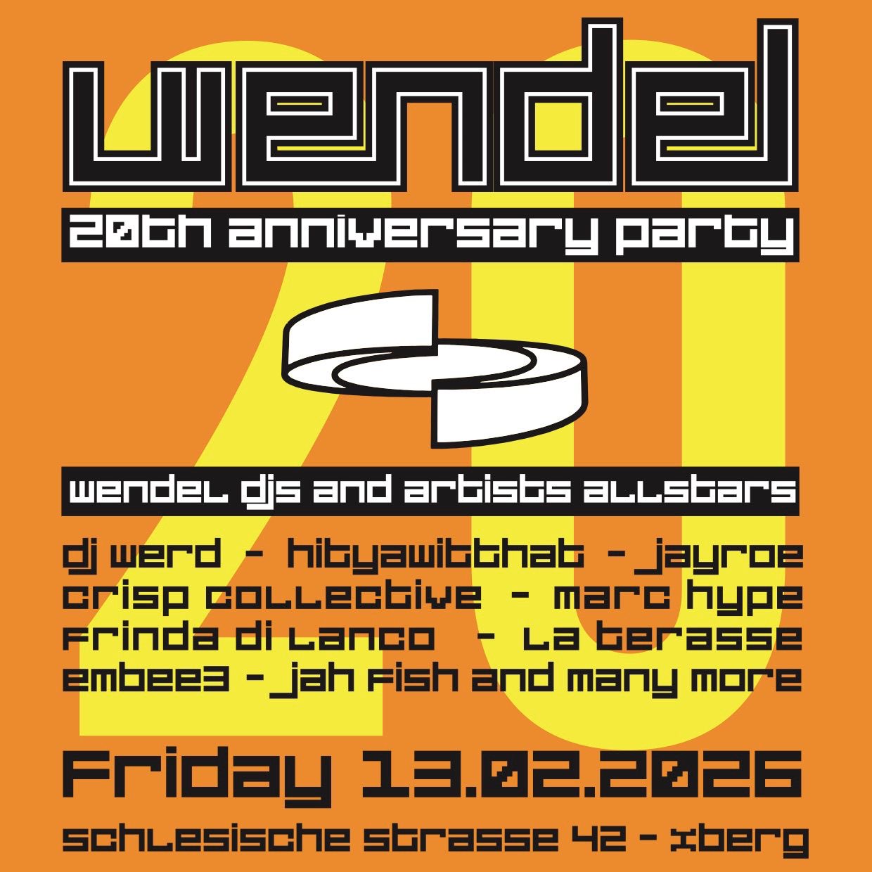 Marc Hype @ 20 Years Cafe Wendel Berlin 45sBerlinDusty DonutsDusty Donuts DJ SquadGermany Date:2026-02-13 Time:20:00 Location: Berlin, Germany Venue: Cafe Wendel