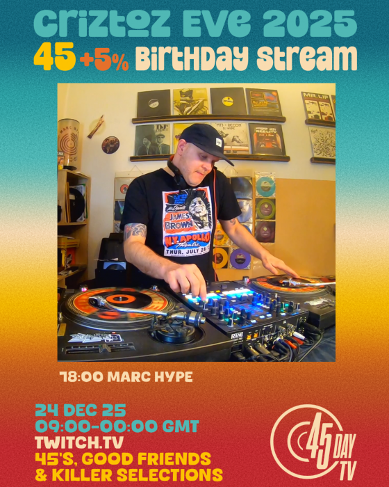 Marc Hype @ Cristoz Eve 2025 Livestream 45 Live45sDusty DonutsDusty Donuts DJ SquadLivestream Date:2025-12-24 Time:18:00 Location: Berlin, Germany Venue: Twitch